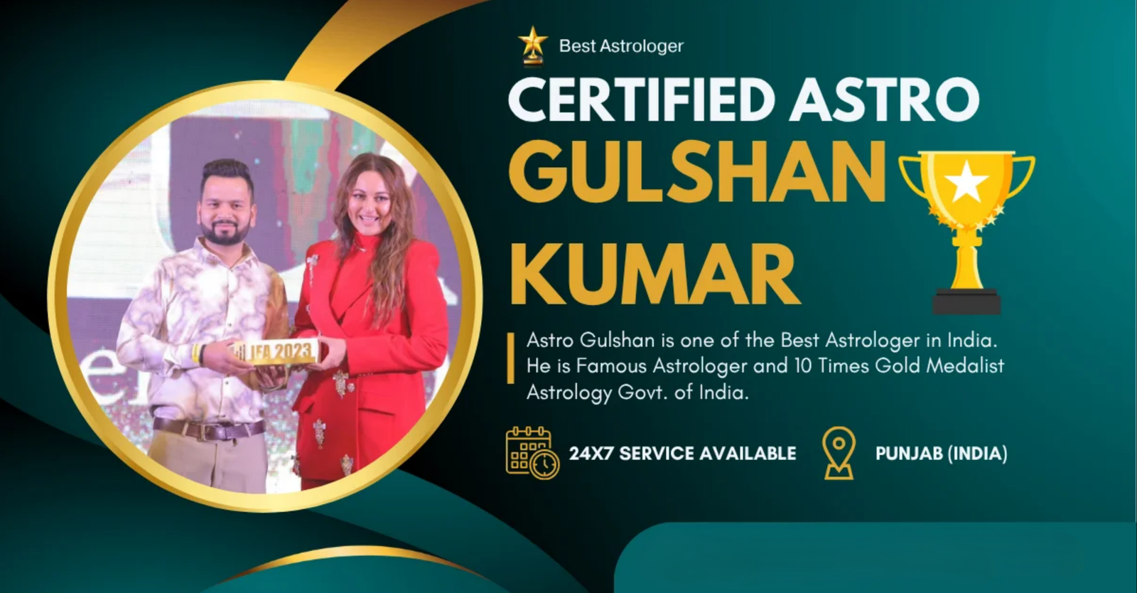Astro Gulshan is one of the Best Astrologer in India. He is Famous Astrologer and 10 Times Gold Medalist Astrology Govt. of India.